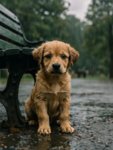 Două zile și două nopți a stat cățelul sub acea bancă. Fără hrană adevărată. Fără adăpost. Cu ploaia care îl uda până în măduva oaselor și frigul care îi pătrundea în trupul firav.