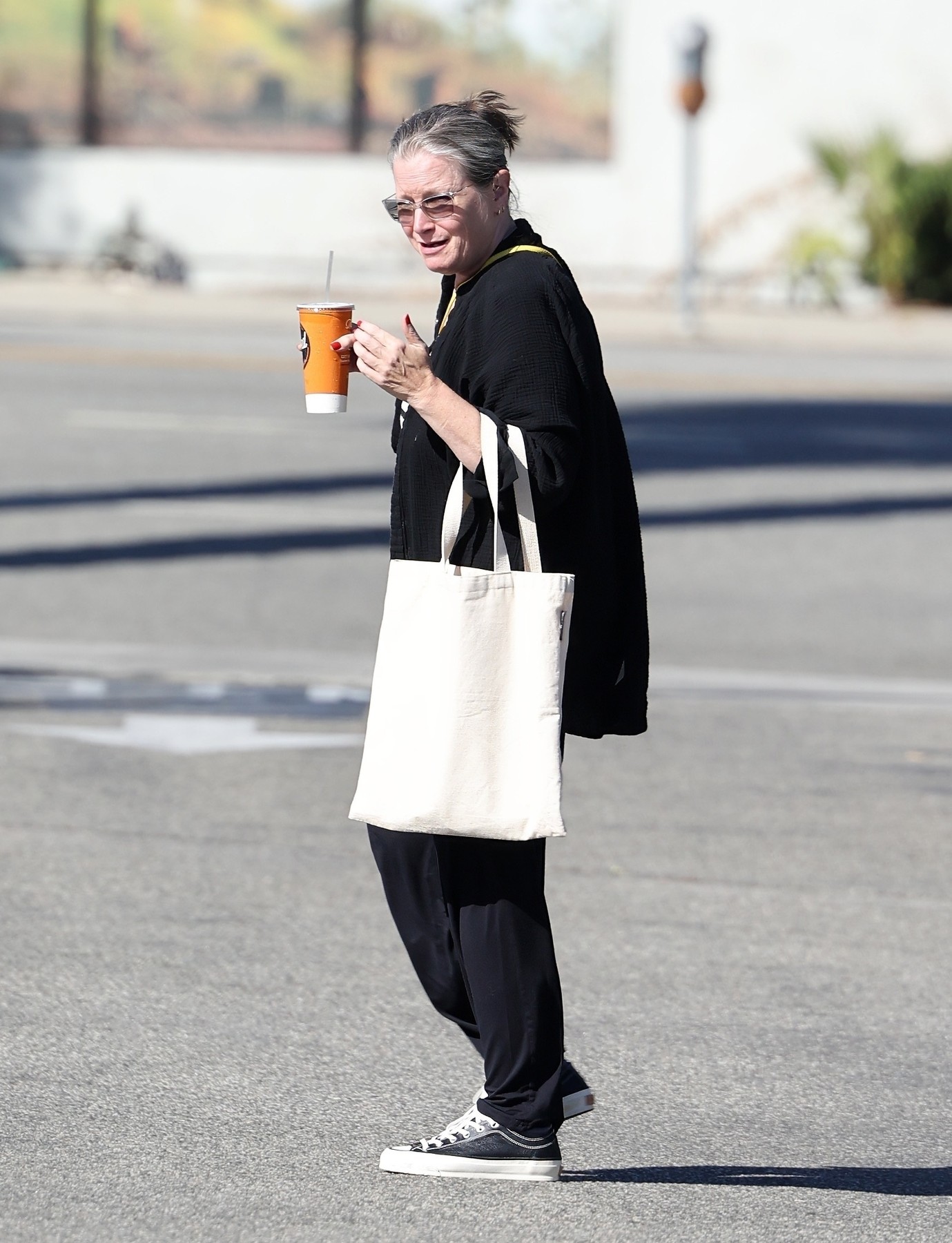 În vârstă de 61 de ani, Bridget a fost fotografiată în timp ce se bucura de o zi normală. A purtat o ținută relaxată: pantaloni negri, un tricou cu dungi alb-negru și un cardigan negru. A accesorizat cu o sacoșă textilă albă, o poșetă galbenă și adidași comozi. Silueta actriței a atras imediat atenția, după o pierdere remarcabilă în greutate.