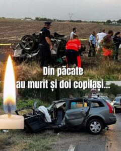 Pe fondul unei depășiri, două autoturisme s-au ciocnit frontal. În urma impactului, un autoturism s-a răsturnat, iar cele 4 persoane aflate în interior și-au pierdut viața.