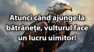 Atunci el zboară spre cuibul său aflat pe vârful stâncii și începe să lovească violent cu ciocul în stâncă, până când ciocul cade… Apoi el așteaptă să-i crească din nou ciocul, cu care el își smulge ghearele. După ce îi cresc alte gheare, el le folosește pentru a rări penele de pe piept și aripi… Astfel, după 5 luni de durere, înfometare și suferință, având cioc și gheare noi, vulturul mai poate trăi încă 30 de ani!De multe ori pentru a ne continua viața noi trebuie să trecem prin anumite schimbări, care de multe ori sunt însoțite de durere, frică și îndoială. Amintirile și obișnuințele din trecut dispar treptat, lăsând loc pentru altele noi.