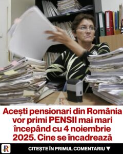 Anumite categorii de pensionari vor primi mai mulți bani în luna noiembrie, ca urmare a procesului de recalculare a pensiilor. Este vorba despre persoanele care au depus adeverințe pentru venituri nepermanente și despre cele care au trecut de la pensia anticipată la cea pentru limită de vârstă. Totodată, plata pensiilor livrate prin Poșta Română va suferi o ușoară întârziere, distribuția banilor urmând să înceapă în jurul datei de 4 noiembrie.