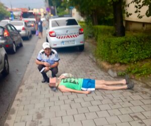 Un echipaj al Poliției Locale Pitești, aflat în patrulare pe strada Smeurei, a observat un bărbat căzut pe trotuar, aproape inconștient, prezentând o rană la cap cauzată de căzătură. Polițiștii au intervenit imediat, acordând primul ajutor și solicitând sprijin medical de urgență.