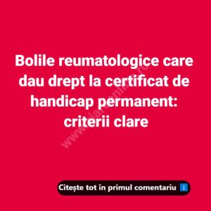 Certificatul permanent de handicap pentru bolile reumatologice și autoimune este reglementat acum prin criterii detaliate, gândite să elimine evaluările neuniforme și deciziile contradictorii. Pentru fiecare diagnostic sunt precizate praguri de severitate, durate minime de tratament fără rezultat și tipuri de investigații necesare, astfel încât încadrarea să se facă pe baze obiective, nu doar pe existența unui diagnostic.