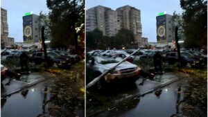 Vântul extrem de puternic a făcut ravagii vineri dimineață în București și județul Ilfov, unde mai multe autoturisme au fost avariate, iar copaci și elemente de construcție s-au prăbușit pe carosabil.