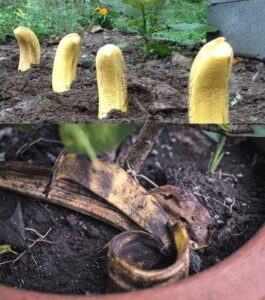 Tot bucatelele de banana tin la distanta afidele. Mirosul pe care il emana cojile de banana respinge insectele daunatoare si astfel plantele au sanse mai mari sa ramana sanatoase.