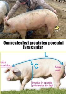Iar C înseamnă circumferinţa, L – lungimea, G – greutatea porcului, în timp ce 69,3 este o constantă de calcul.