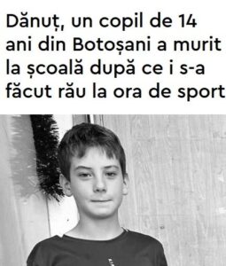 O tragedie petrecută marți, 3 martie 2026, a zguduit comuna Ipotești din județul Botoșani: Dănuț (Hîrtie Darius–Daniel), 14 ani, s-a prăbușit în timpul orei de educație fizică la Școala Gimnazială „Mihai Eminescu”. Profesorii au sunat imediat la 112 și i-au acordat primul ajutor până la sosirea echipajului medical.