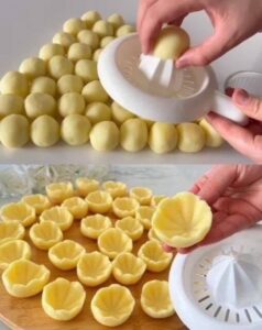 Aceasta este o rețetă simplă și delicioasă pentru a face coșulețe crocante din doar două ingrediente de bază: cartofi și amidon. Iată pașii detaliați pentru a o pregăti: