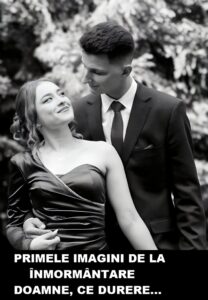 Fotografiile surprinse în fața lăcașului de cult arată atmosfera sfâșietoare: flori albe, lumânări aprinse și oameni împietriți de durere, care au venit să-și ia rămas-bun de la doi tineri ce trebuiau să fie mire și mireasă,nu două sicrie așezate laolaltă.