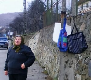 În sat nu există un magazin sătesc, așa că mașina cu pâine vine de la 20 de kilometri distanță. Astfel, localnicii își agață plasele cu bani pe stâlpii din fața caselor, iar șoferul livrează pâinea, urmând instrucțiunile lăsate de aceștia în bilețele.