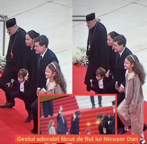 Micuțul a salutat oameniiUn moment inedit s-a petrecut chiar la sosirea lor: în clipa în care a coborât din mașină, mezinul familiei a luat-o la fugă prin curtea Catedralei, stârnind zâmbete și amuzament printre cei prezenți.