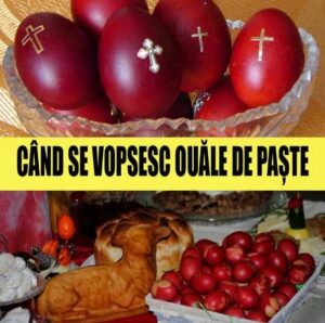 Conform tradiției ortodoxe, ouăle de Paște se vopsesc în Joia Mare, adică în Joia din Săptămâna Patimilor. Această zi este încărcată de semnificație spirituală, fiind momentul Cinei celei de Taină, când Iisus Hristos a instituit Taina Împărtășaniei. Este o zi dedicată curățeniei sufletești, dar și gospodăriei.