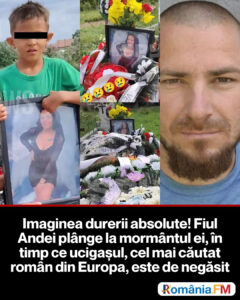 Imaginea durerii absolute! Fiul Andei plânge la mormântul ei, în timp ce ucigașul, cel mai căutat român din Europa, este de negăsit