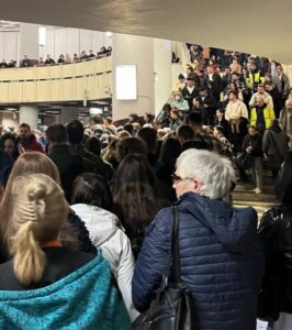 Potrivit informațiilor disponibile, trenul cu probleme a rămas aproximativ 10 minute în stație înainte de a fi scos din circulație. În acest timp, călătorii au fost rugați să coboare pe peron, moment în care s-a creat o aglomerare severă. Blocajul de 10 minute a intervenit într-un interval în care, în mod normal, trenurile sosesc la două în două minute, ceea ce a dus la perturbarea rapidă a ritmului de circulație.
