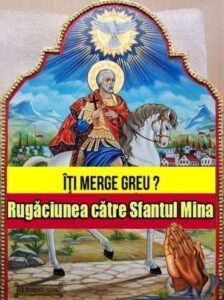 Rugăciunea către Sfântul Mare Mucenic Mina devine o speranță de a căuta sprijinul său, recunoscându-l ca făcător de minuni și protector al celor sărmanii de dreptate.