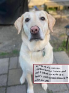 Curioasa din fire, am scris un bilet si i l-am bagat sub zgarda. Am scris: As vrea sa aflu cine este stapanul acestui frumos caine si sa il intreb daca stie ca in fiecare dupa-amiaza doarme la mine in curte.