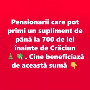 Suplimentul de iarnă reprezintă a doua tranșă dintr-un pachet total de 800 de lei, din care prima parte a fost acordată înaintea sărbătorilor de Paște. Astfel, cei îndreptățiți vor încasa acum tranșa finală, cu un cuantum maxim de 700 de lei, în funcție de încadrarea în criteriile stabilite.