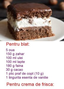 Această prăjitură minunată, cu straturi aerate de blat cu cacao, cremă delicioasă de frișcă și o glazură fină de ciocolată, este desertul ideal pentru orice ocazie. Deși necesită puțin timp pentru preparare, rezultatul final va fi cu siguranță impresionant. Să vedem împreună cum se pregătește acest desert irezistibil!