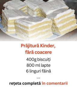 Prăjitură fragedă și aromată, fără coacere – Aveți nevoie de 400g biscuiți, 800 ml lapte, 6 linguri făină, 100g unt, 200g zahăr pudră și…