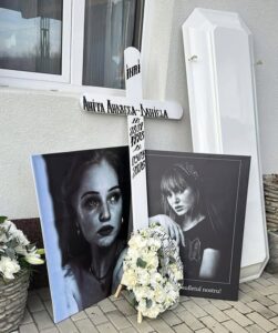 Atmosfera este una apăsată, dar demnă. Se aud pași rari și murmure de rugăciune, iar chipurile celor prezenți spun mai mult decât orice cuvinte. În fața catafalcului, preoții citesc rugăciuni de pomenire, iar familia primește condoleanțele celor veniți să fie alături. Mulți dintre cei prezenți poartă în suflet imaginea unei tinere optimiste, care a refuzat până la capăt să renunțe la speranță.