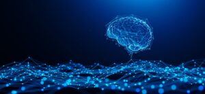 Digital Brain Hologram Hud. Artificial intelligence AI machine deep learning. Business Technology Internet Network Concept. 3D Illustration
