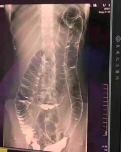 În situații de stagnare prelungită a reziduurilor, colonul este forțat să se lărgească pentru a face loc conținutului reținut. În cazul acestei paciente, întinderea severă a pereților intestinali a transformat un organ flexibil într-unul rigidizat și lipsit de ondulațiile obișnuite. Această transformare reduce capacitatea de contracție și întreține cercul vicios al constipației.