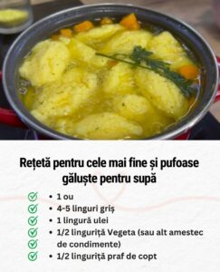 Aceste găluște moi și delicate sunt ideale pentru a îmbunătăți orice fel de supă, adăugând o textură ușoară și un gust tradițional, de casă.
