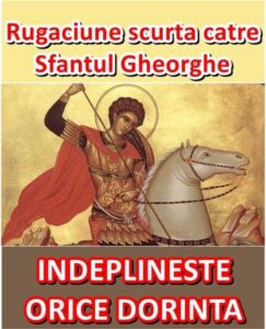 Ajută-mă pe mine și pe familia mea în (se spune problema). Îți mulțumesc Sfinte Gheorghe și Te cinstesc pe Tine și Te preamăresc în veci.”