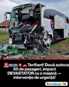ȘOCANT! Două autocare pline cu 50 de pasageri, implicate într-un impact DEVASTATOR cu o mașină – vezi ce s-a întâmplat la fața locului!