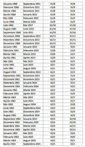 În galeria foto a articolului, găsiți un tabel pentru femei și bărbați, în care puteți afla stagiul complet de cotizare, în funcție de luna și anul nașterii, dar și de perioada pensionării. Numărul care vă interesează pentru a aplica formula de calcul se află în ultima coloană. Acela va determina cați bani ar trebui să primiți la pensie.