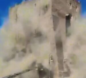 La scurt timp după prima prăbușire, în jurul orei 13:00, partea interioară a turnului a cedat din nou, ceea ce a complicat intervenția echipelor de salvatori.
