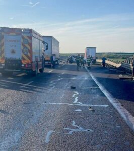 Tragedie pe autostrada A1: un bărbat a murit, iar soția sa a fost transportată la spital, după ce un TIR a lovit în plin o mașină oprită pe banda de urgență. Accidentul s-a petrecut pe 6 aprilie 2026, iar primele indicii arată că autoturismul, care tracta o platformă, era tras pe dreapta, în afara benzii de rulare, în timp ce cei doi ocupanți coborâseră din vehicul.