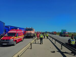 Un grav accident în lanț s-a petrecut marți după-amiază pe autostrada A1, București- Pitești. Un copil a murit iar tatăl său și alte 3 persoane au fost grav răniți în carambol. Un autoturism a fost complet strivit între două tiruri.Mașinile stau într-o coloană blocată pe aproximativ 3km. Accidentul s-a petrecut în jurul orei 15. În acel moment, toate mașinile circulau pe o singură bandă de circulație, pe banda unu, pentru că pe cealaltă bandă se efectuau lucrări de reparație la carosabil, iar mașina care a fost trivită era încadrată între două TIR-uri.