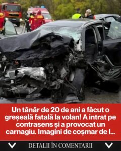 Vehiculul scăpat de sub control a intrat în coliziune frontală cu o altă mașină, care se deplasa regulamentar și era condusă de un bărbat de 36 de ani, din comuna Perișo