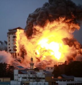 “BREAKING: Casualties reported in Tel Aviv – smoke rising from impact site as Iranian ballistic missiles hit residential areas.”