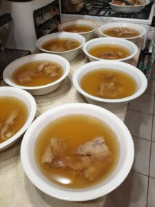 Pentru a obține o răcitură transparentă, picioarele de porc trebuie fierte… într-un săculeț de tifon. Rasolul de vită îl pun direct în bulion, iar picioarele de porc le pun mai întâi în tifon și abia apoi le scufund în oală.