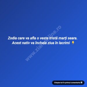 Marți seara, 24 martie 2026, energia zilei se schimbă brusc pentru un singur semn zodiacal, iar atmosfera devine încărcată emoțional. O informație venită pe neașteptate poate răsturna starea cuiva care își începuse dimineața liniștit. Deși ritmul obișnuit al zilei nu anunță nimic ieșit din comun, finalul aduce o veste grea ce lasă urme adânci. Intensitatea resimțită e mar